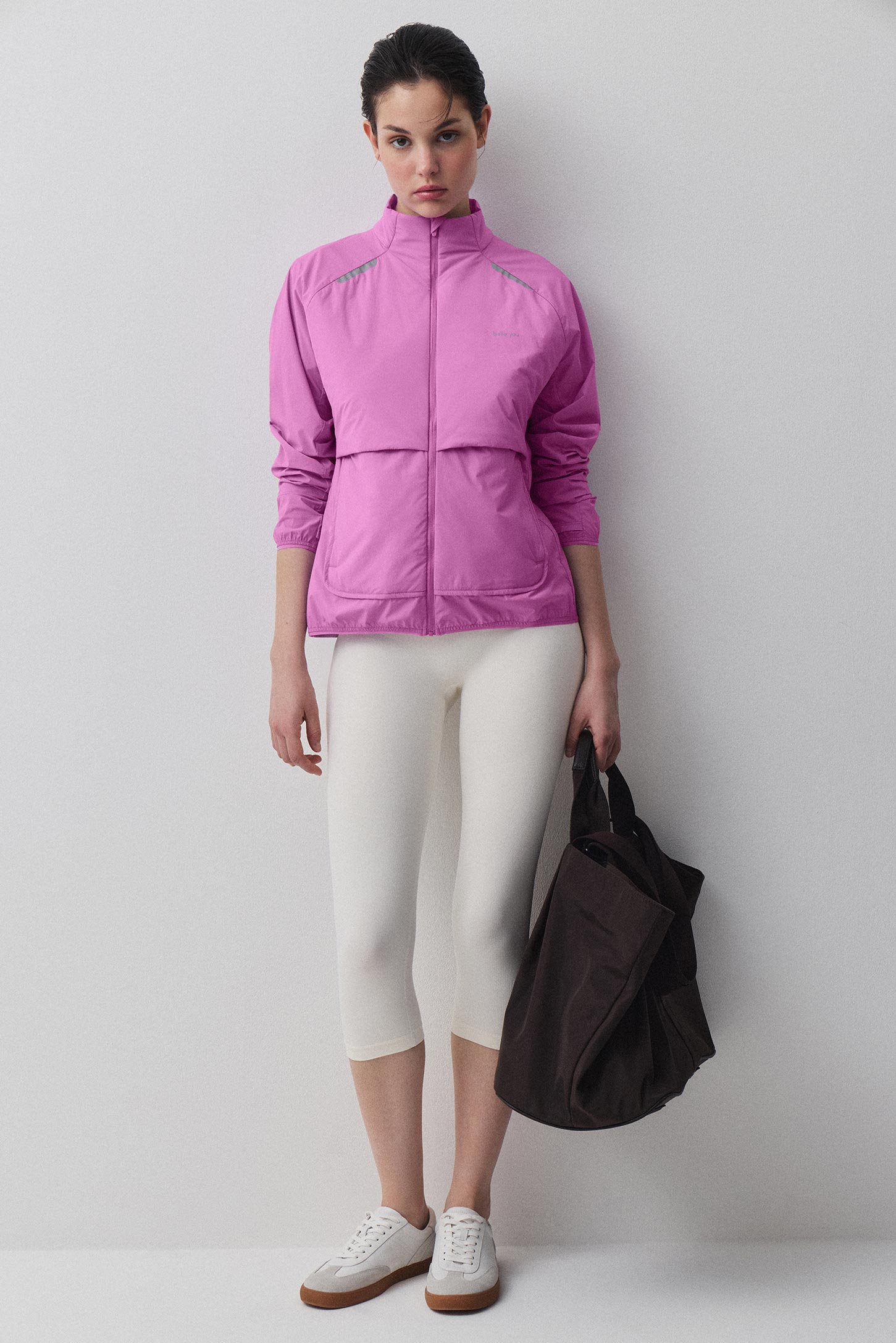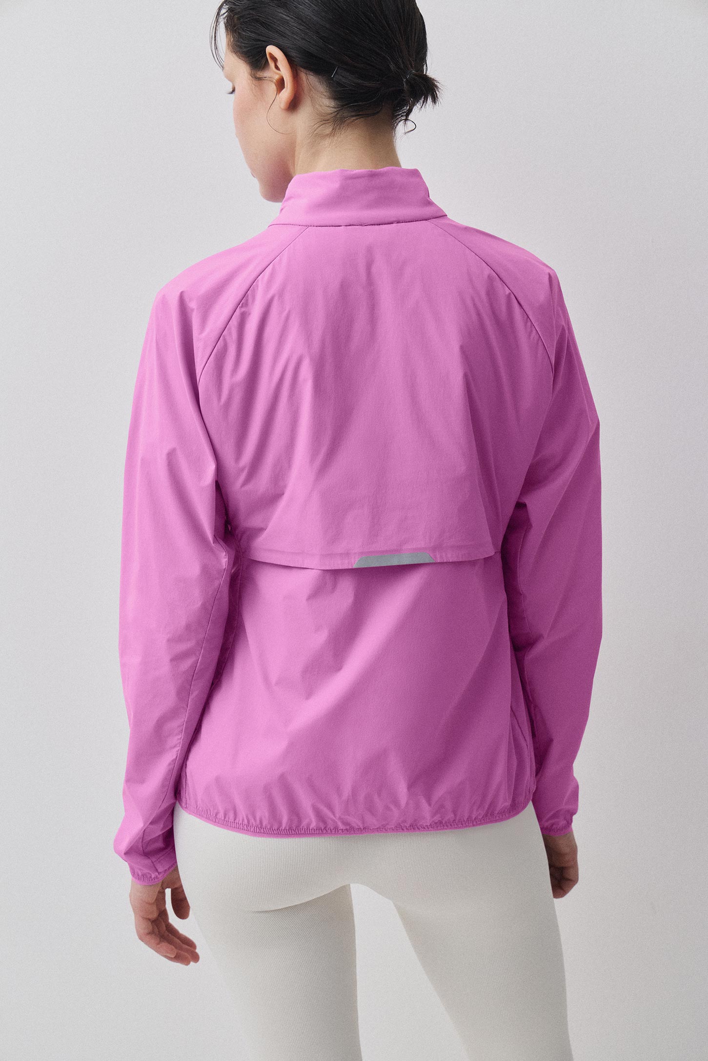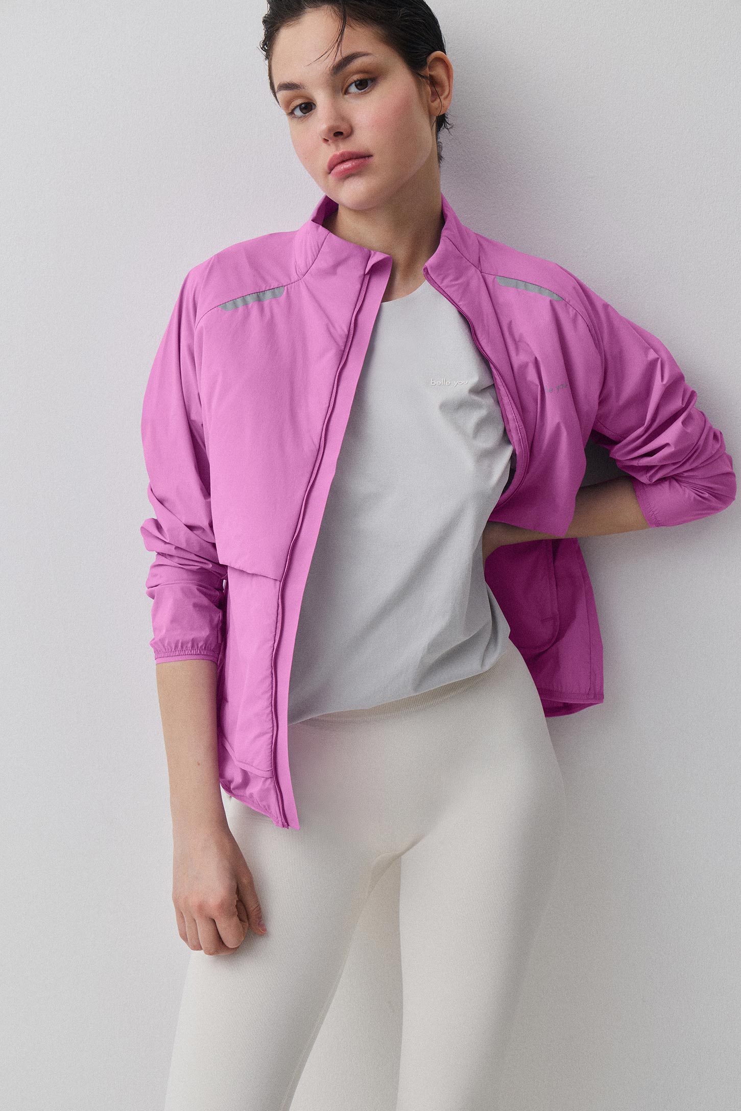Накладные карманы с молниями спереди - незаменимая деталь для ветровки. Светоотражающие принты на полочке и спинке, а также светоотражающий логотип бренда служат функциональным дополнением. По низу рукава отрезная деталь фиксирует рукав на большом пальце при активном движении. Легкая спортивная полиамидная ткань пропускает воздух, обеспечивая терморегуляцию.