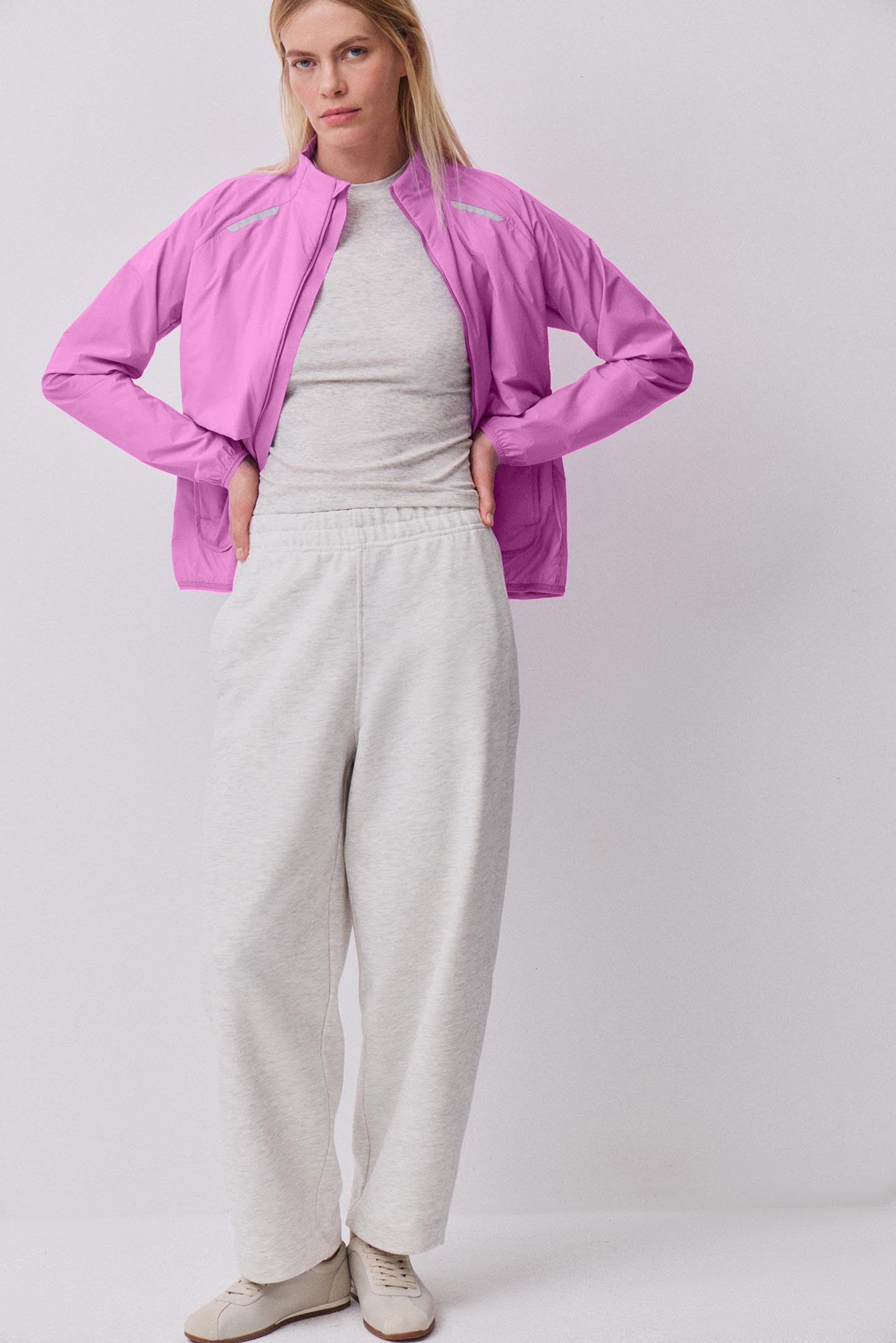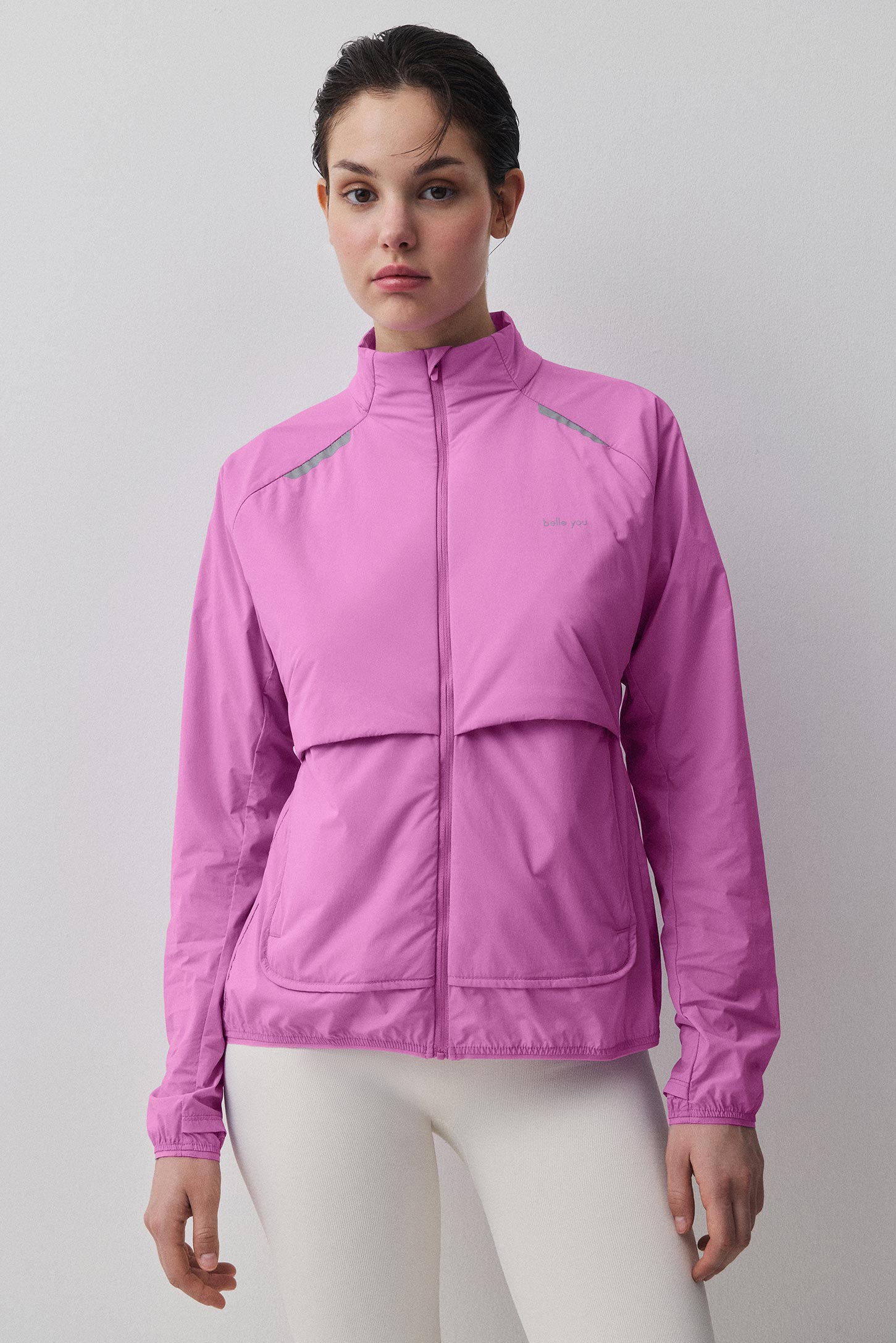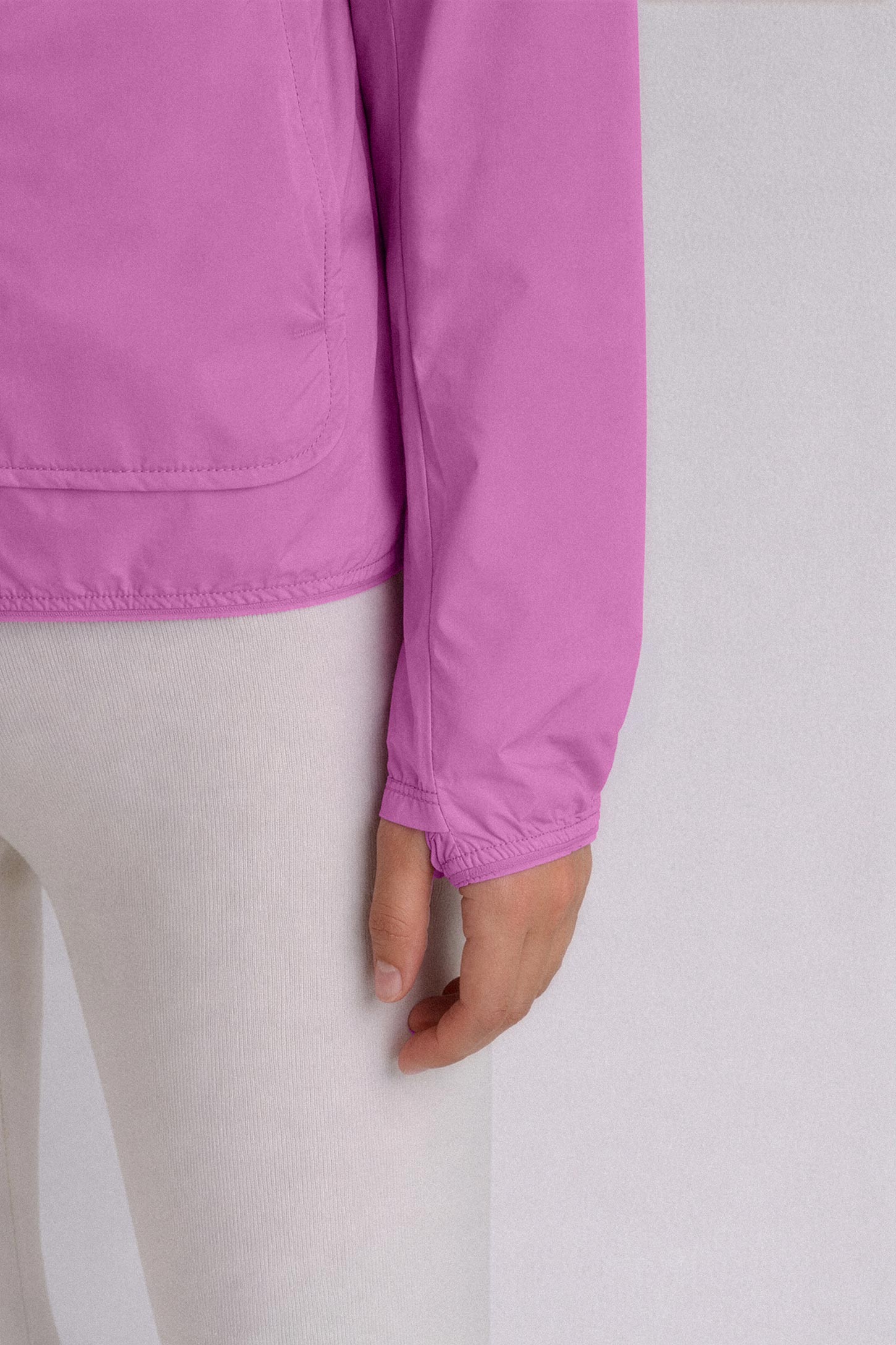 Накладные карманы с молниями спереди - незаменимая деталь для ветровки. Светоотражающие принты на полочке и спинке, а также светоотражающий логотип бренда служат функциональным дополнением. По низу рукава отрезная деталь фиксирует рукав на большом пальце при активном движении. Легкая спортивная полиамидная ткань пропускает воздух, обеспечивая терморегуляцию.