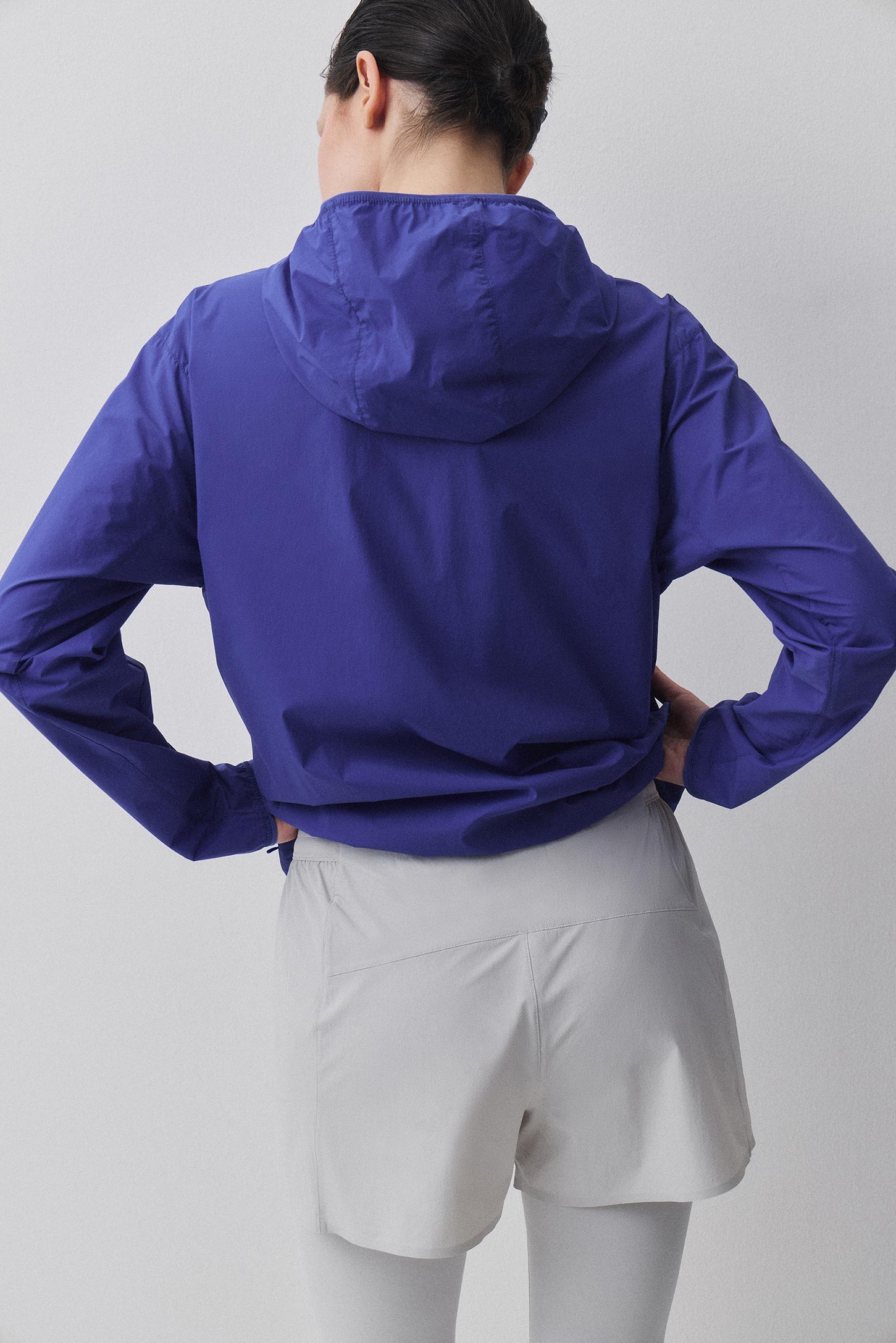 Ветровка прямого силуэта с капюшоном Боковые швы смещены на полочку и дополнены карманами спереди. Рукав и низ изделия собраны на резинку. На полочку нанесен светоотражающий логотип бренда. Легкая спортивная полиамидная ткань пропускает воздух, обеспечивая терморегуляцию. Куртку можно сложить в мешочек из основной ткани, идущий в комплекте.