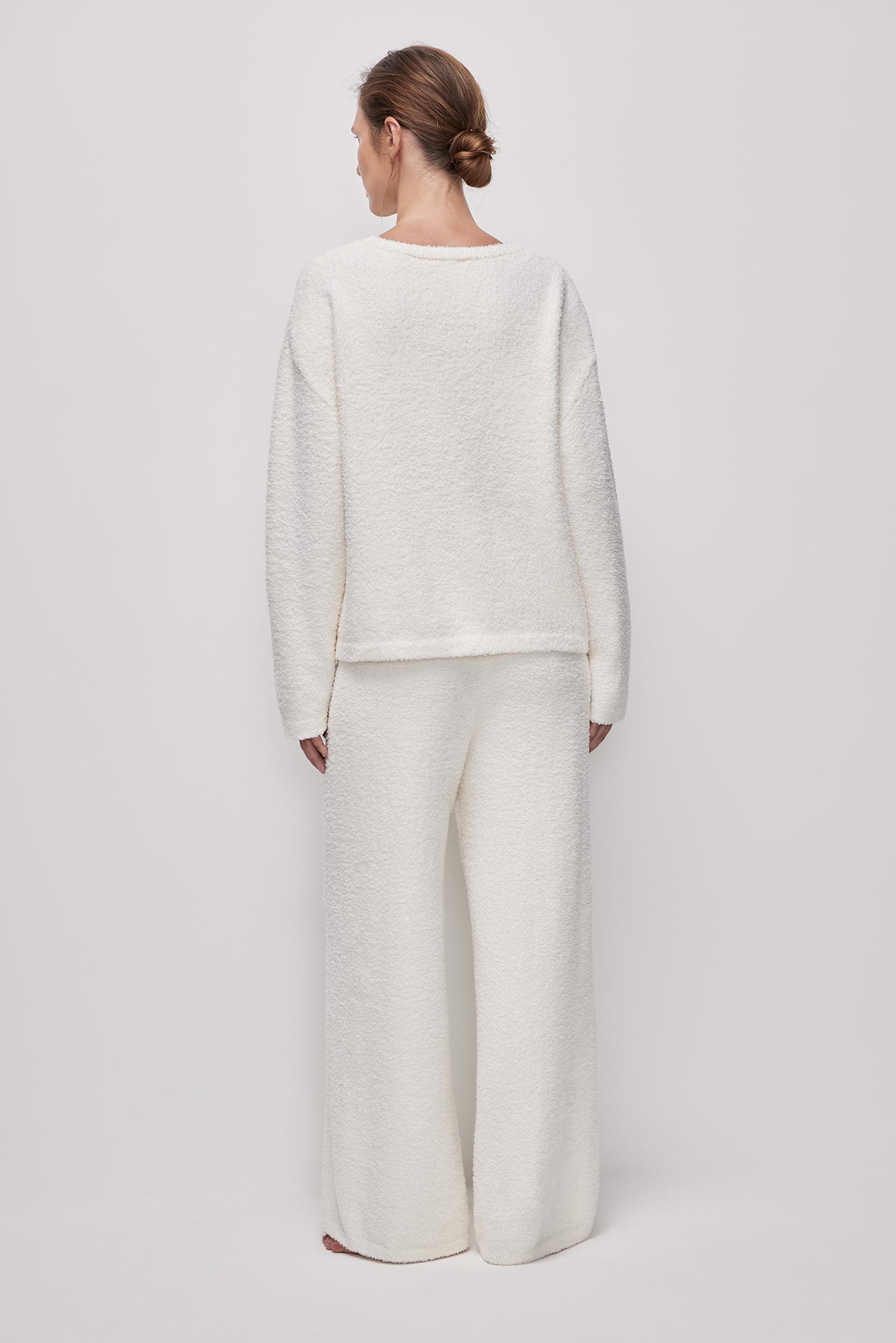 Джемпер прямого силуэта обеспечивает комфорт и свободу движений. Круглая горловина подчеркивает линию шеи. Фактурный буклированный трикотаж дарит мягкость и делает образ современным и выразительным.