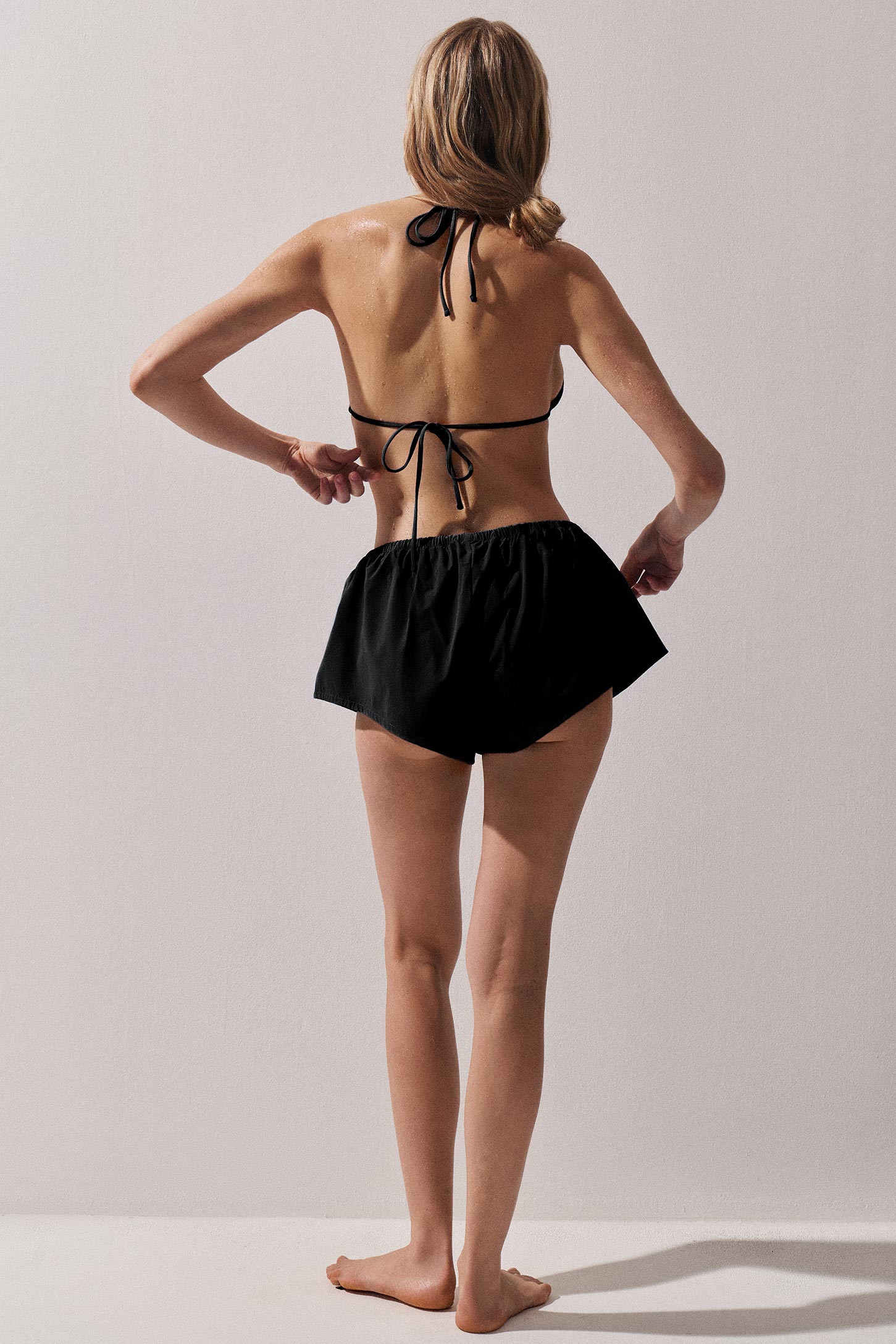 Купальные шорты свободного кроя с контрастными шнурками. Свободный крой позволяет двигаться легко и естественно. Эластичный пояс обеспечивает удобную посадку.