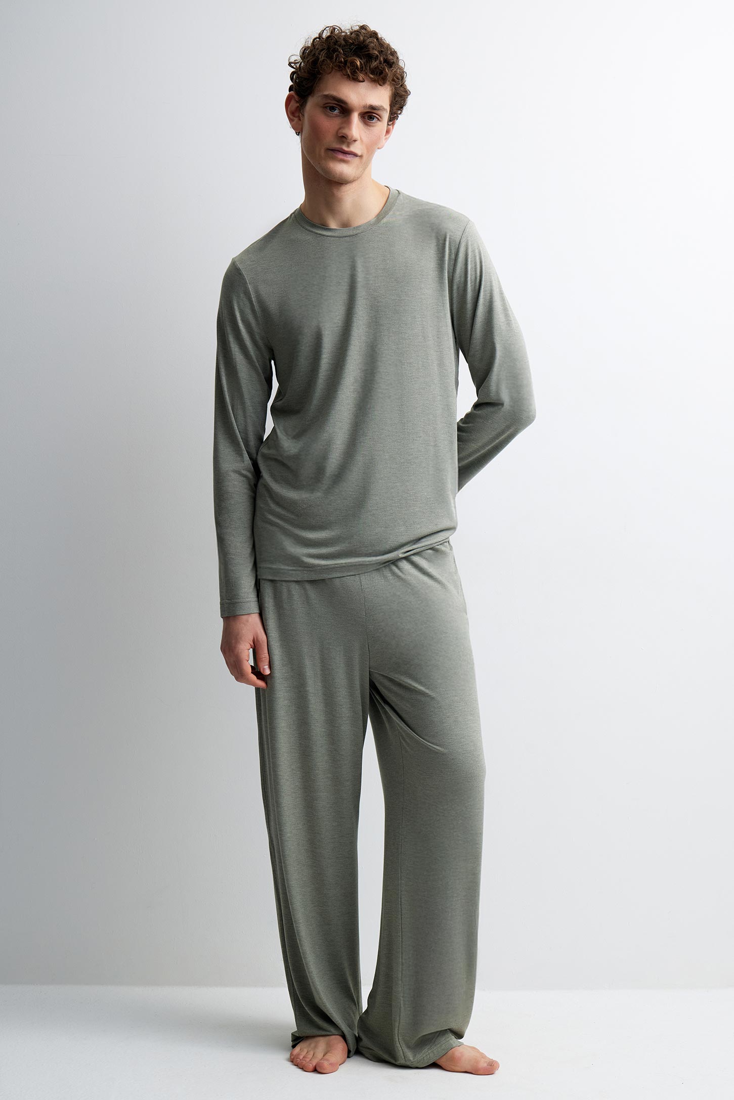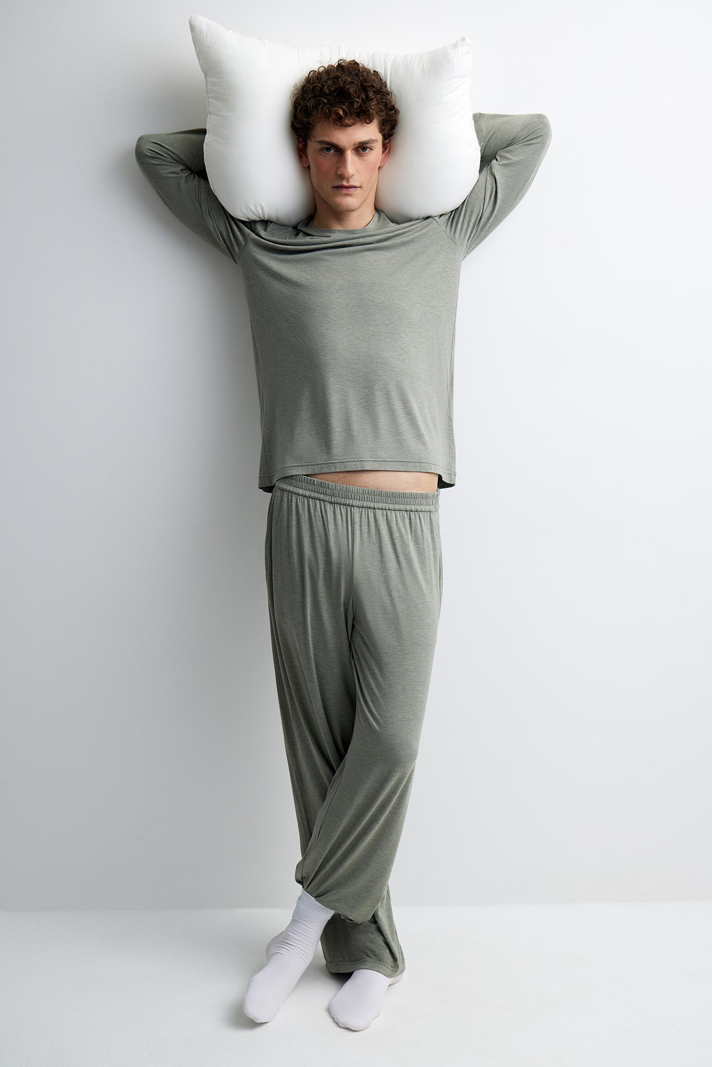 Лонгслив из бамбука Bamboo Lounge зеленый меланж