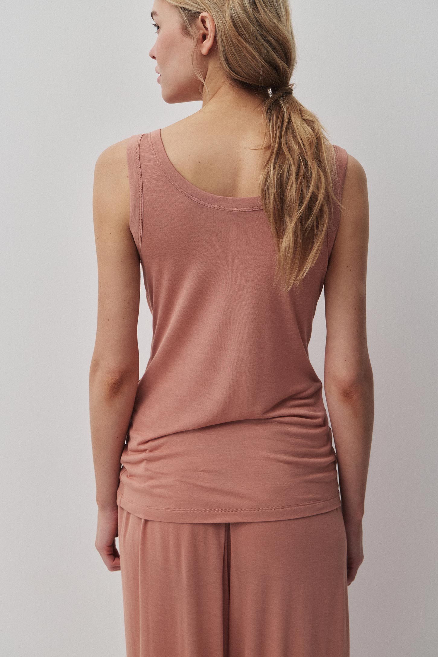 Майка на широких бретелях из модала. Модель свободного силуэта и не сковывает движения. Идеальная база в ярком цвете, чтобы чувствовать себя дома расслаблено и стильно.