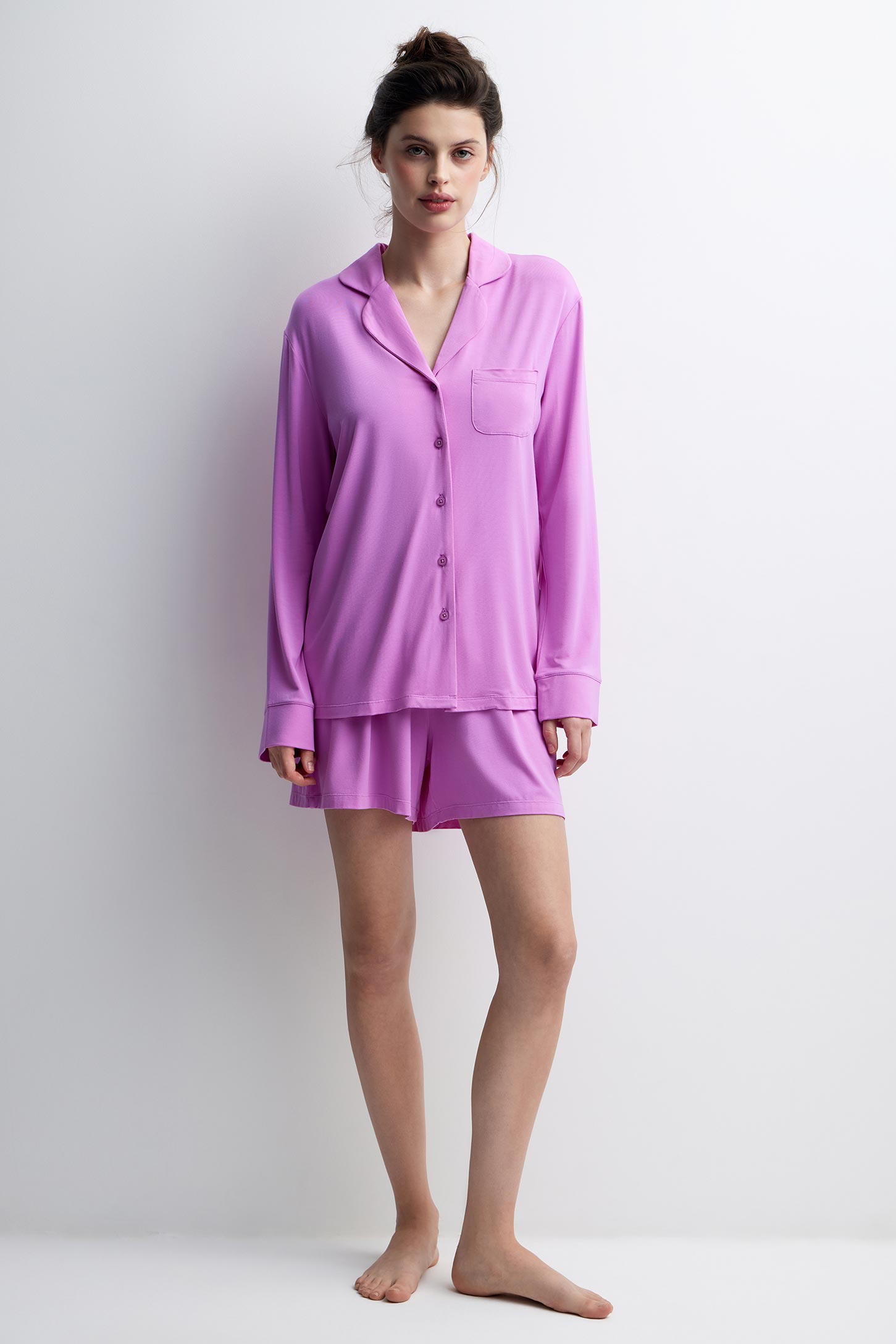 Рубашка из мягкого трикотажного бамбукового полотна, которое отличается высокой воздухопроницаемостью, гипоаллергенностью и способностью отводить влагу, обеспечивая комфорт в течении дня. Элегантный английский воротник подчеркивает линию лица и шеи, и придает образу утонченность. Декоративные манжеты на рукавах служат стильным акцентом рубашке. Накладной нагрудный карман дополняет дизайн и остается функциональным элементом для мелочей. Пуговицы в тон ткани создают единый лаконичный вид.