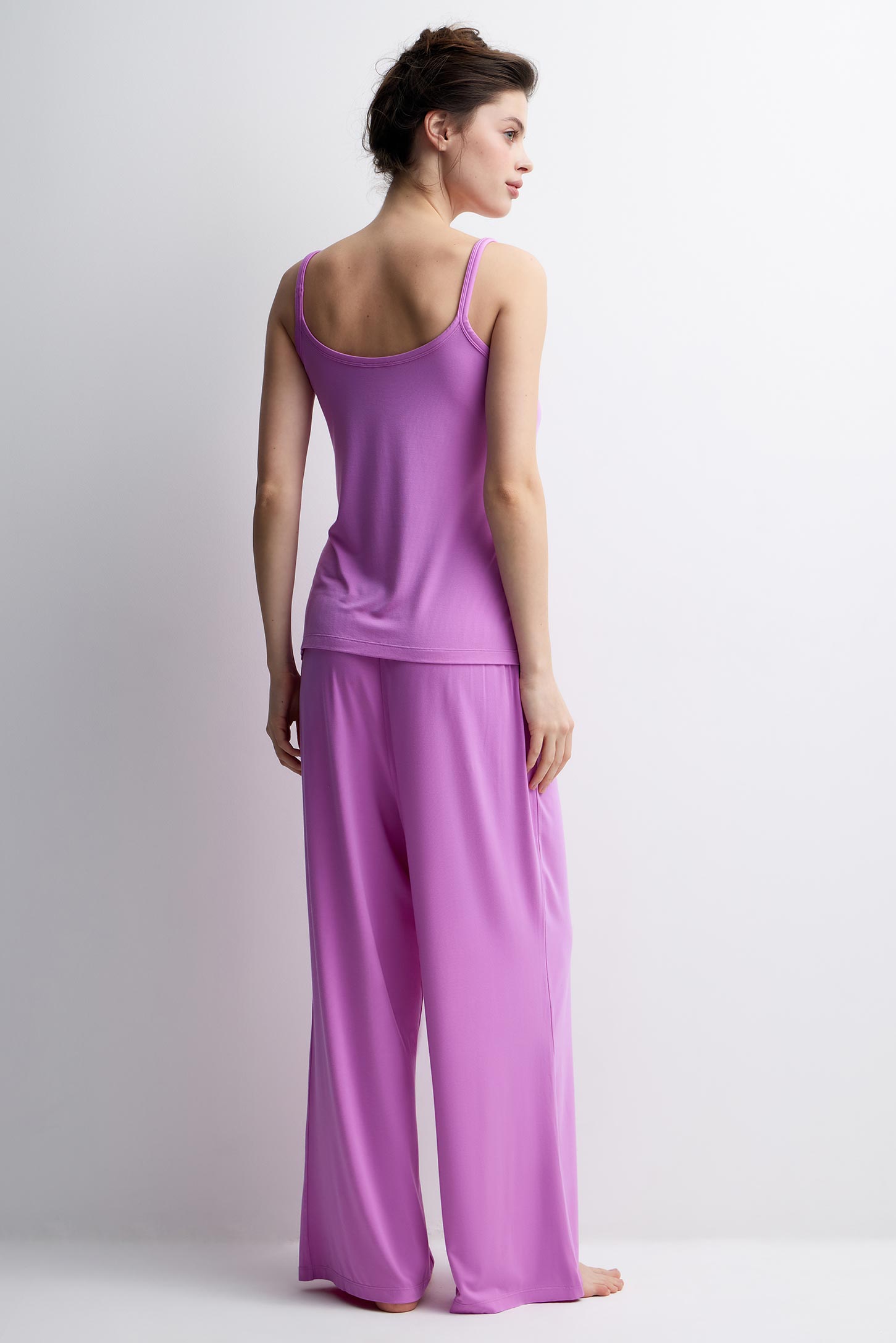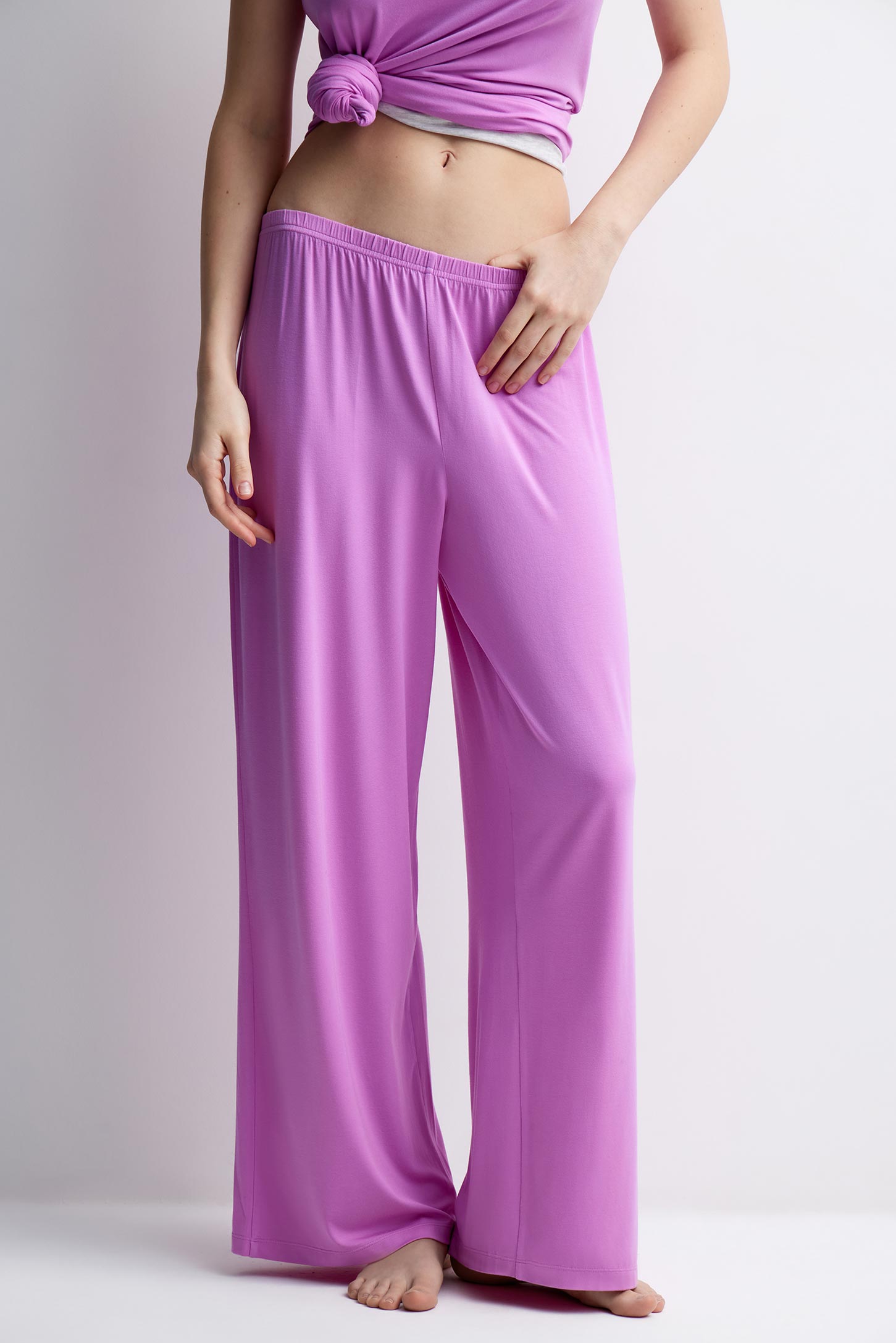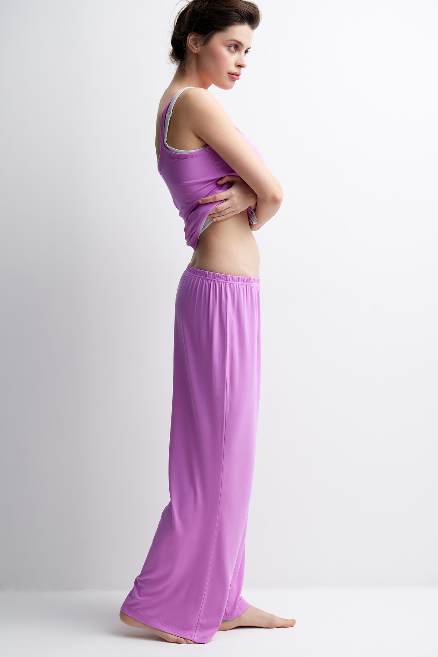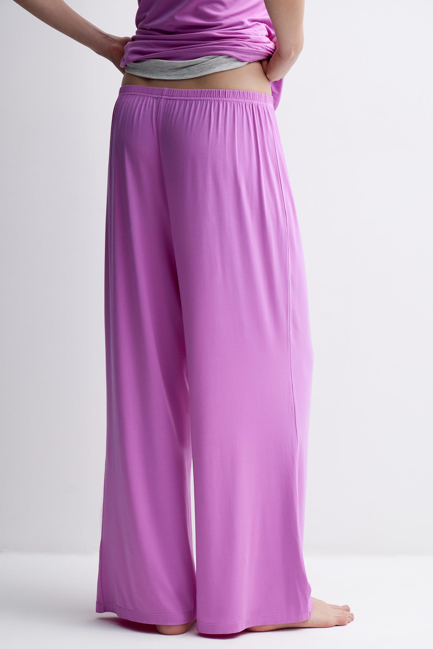 Брюки из мягкого трикотажного бамбукового полотна, которое отличается высокой воздухопроницаемостью, гипоаллергенностью и способностью отводить влагу, обеспечивая комфорт в течении дня. Эластичный пояс на резинке обеспечивает удобную посадку без давления. Прямой силуэт визуально вытягивает ноги и не сковывает движений. Посадка на талии обеспечивает комфорт и универсальность - изделие легко сочетать с различными элементами гардероба.