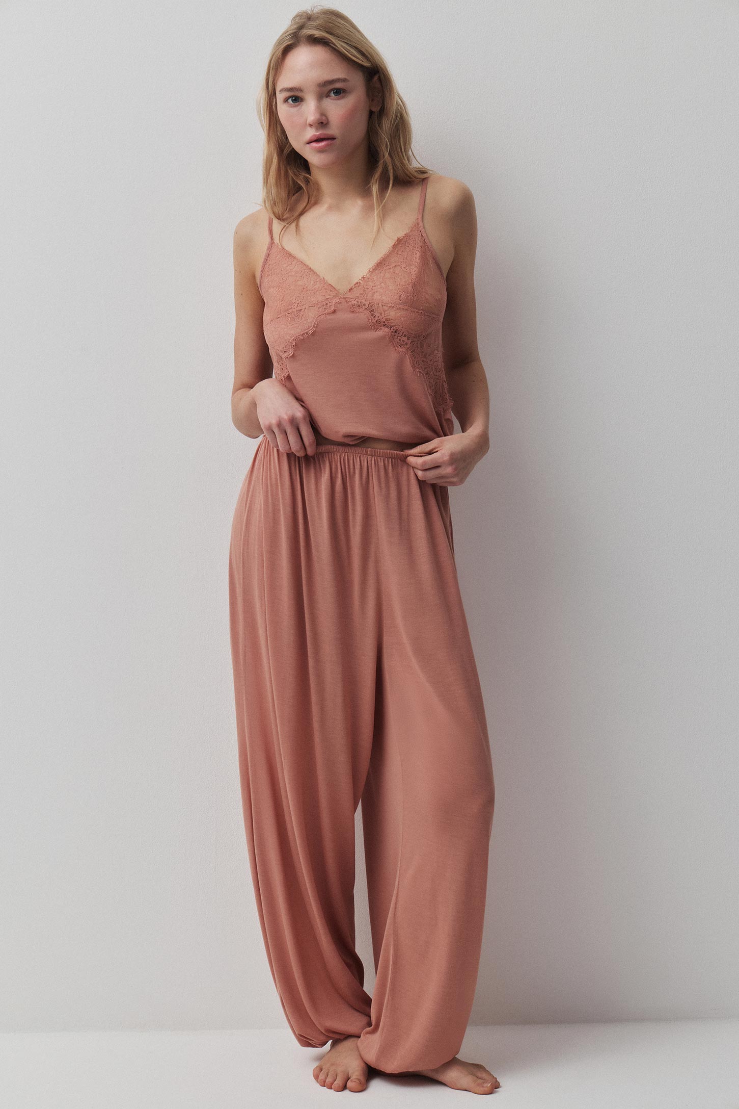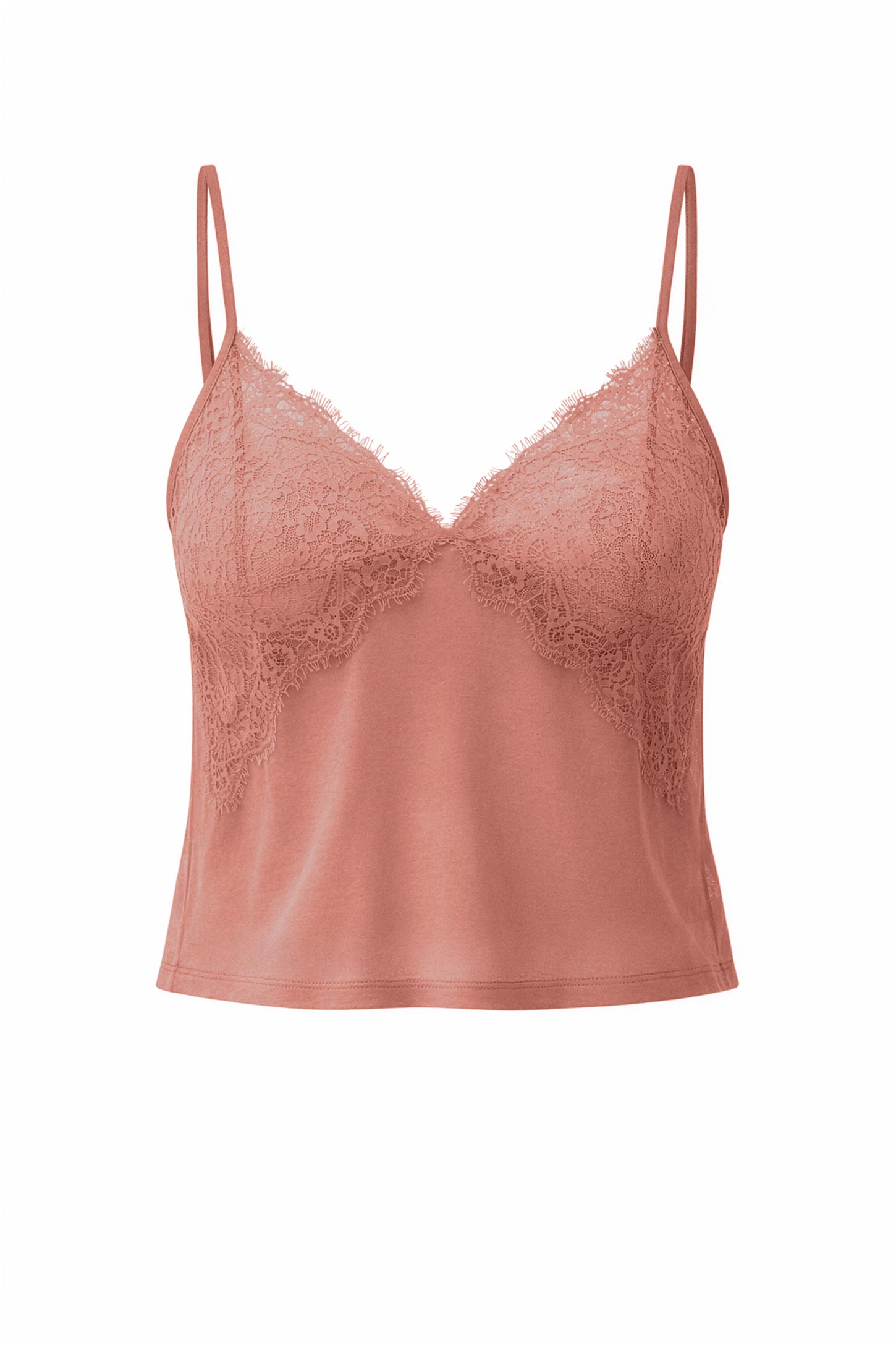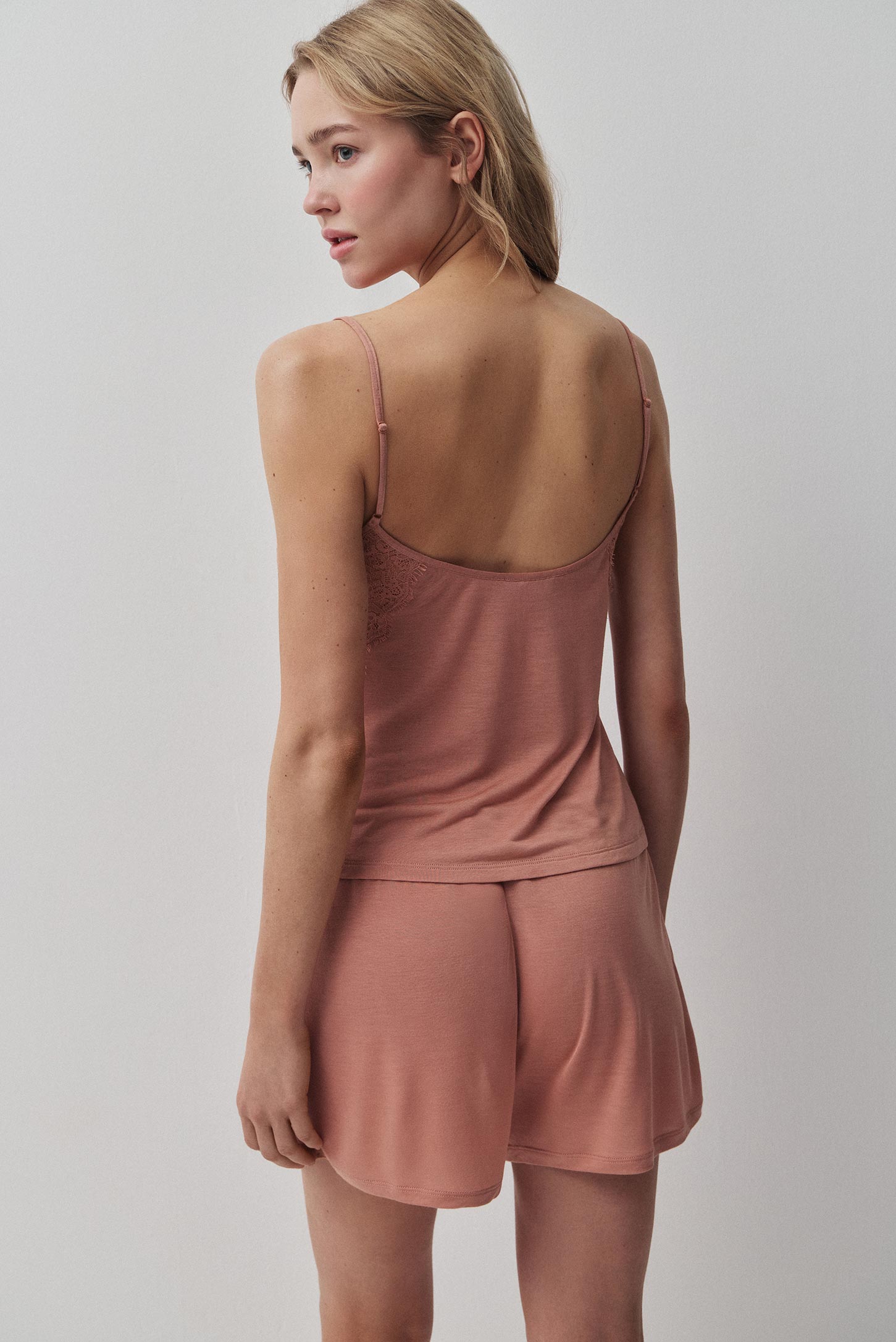 Майка на тонких регулируемых бретелях свободного силуэта с отрезным лифом. Перед и спинка оформлены мягким кружевом с красивым нежным рисунком. Изделие выполнено из тонкого и мягкого модала. Модель хорошо подходит для уютных и элегантных домашних образов.
