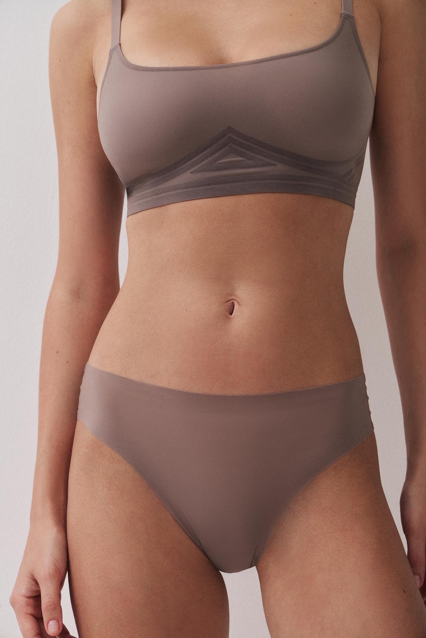 Трусы-танга с классической средней посадкой из полупрозрачной ткани. Дополнены ластовицей из 100% хлопка.