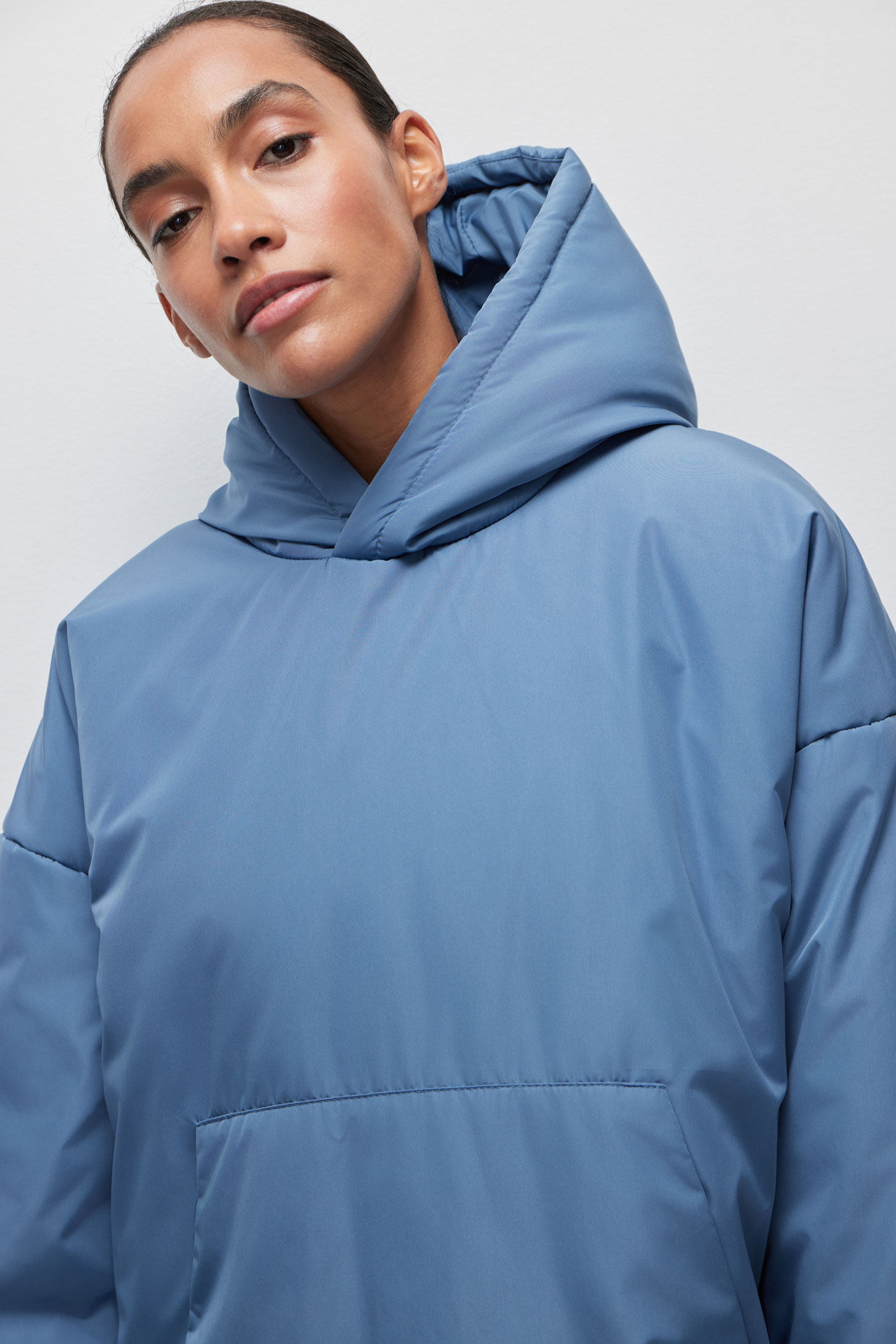 Анорак из плащевой ткани с синтепоновымутеплителем. Изделие полностью на подкладке, по низу объем регулируется резинкой, которую можно зафиксировать стопперами. Удобный карман-