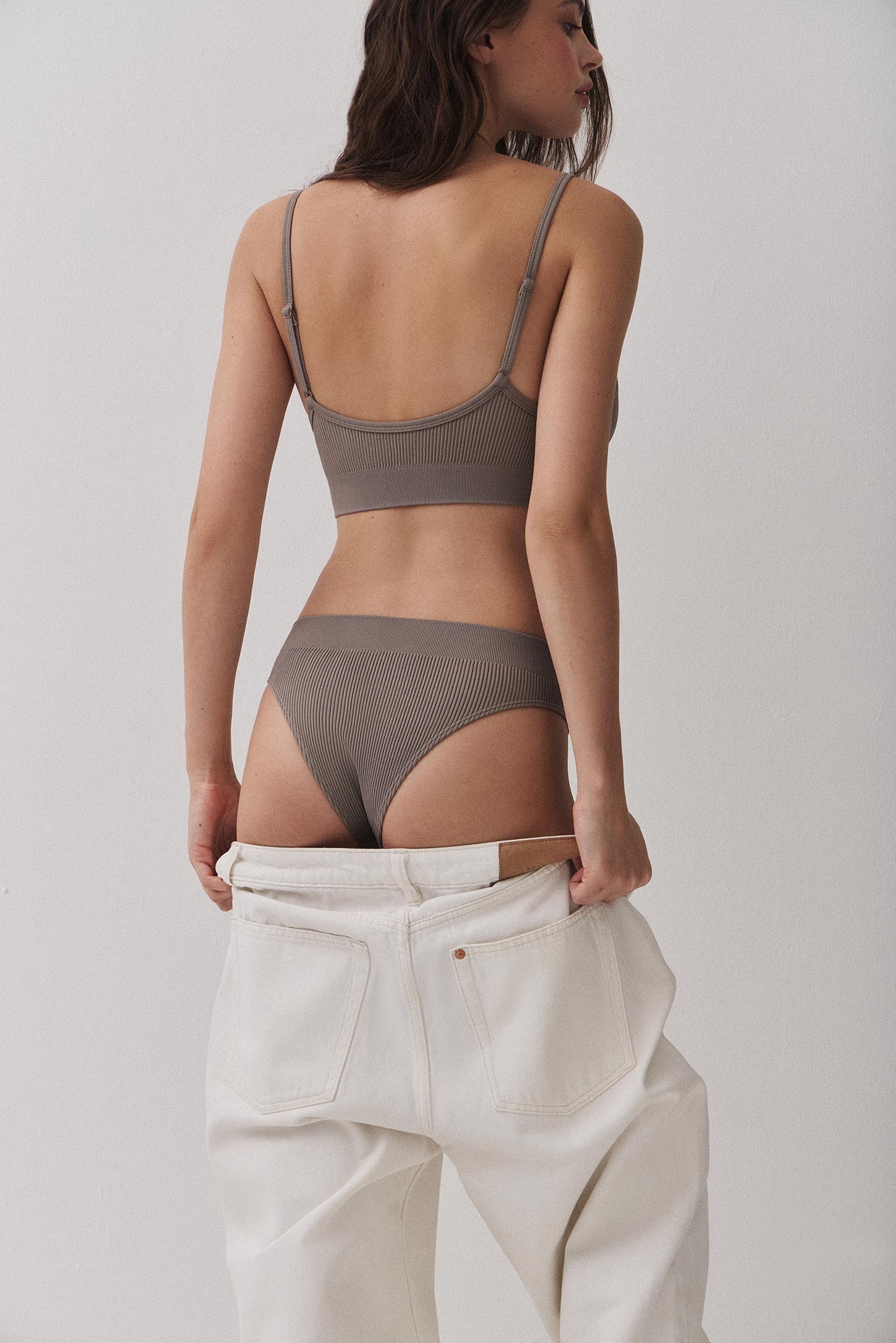 Трусы-стринги со средней посадкой изготовлены из микрофибры и не имеет боковых швов.