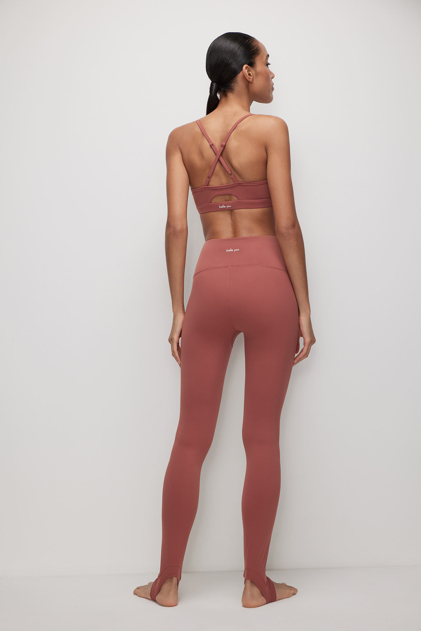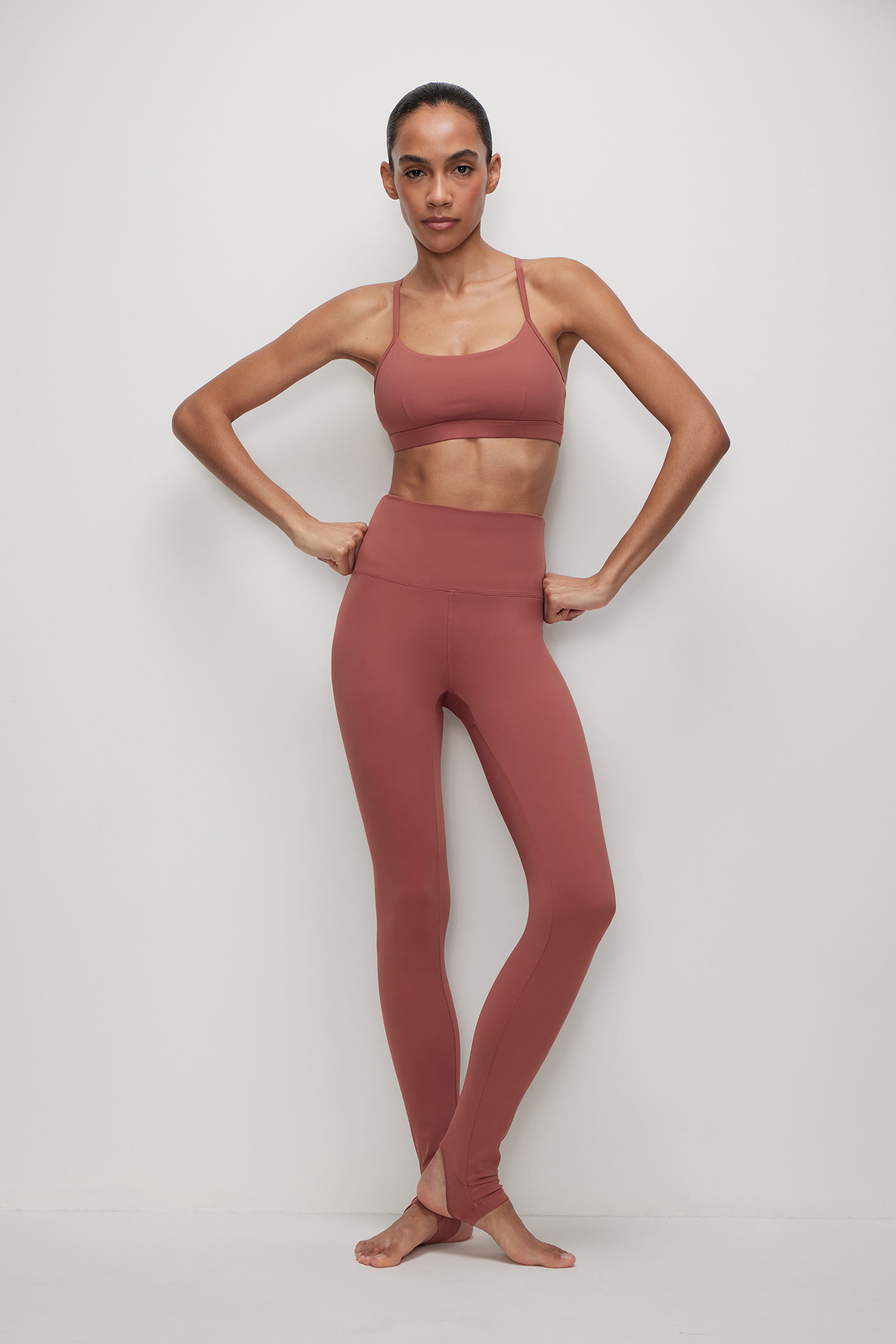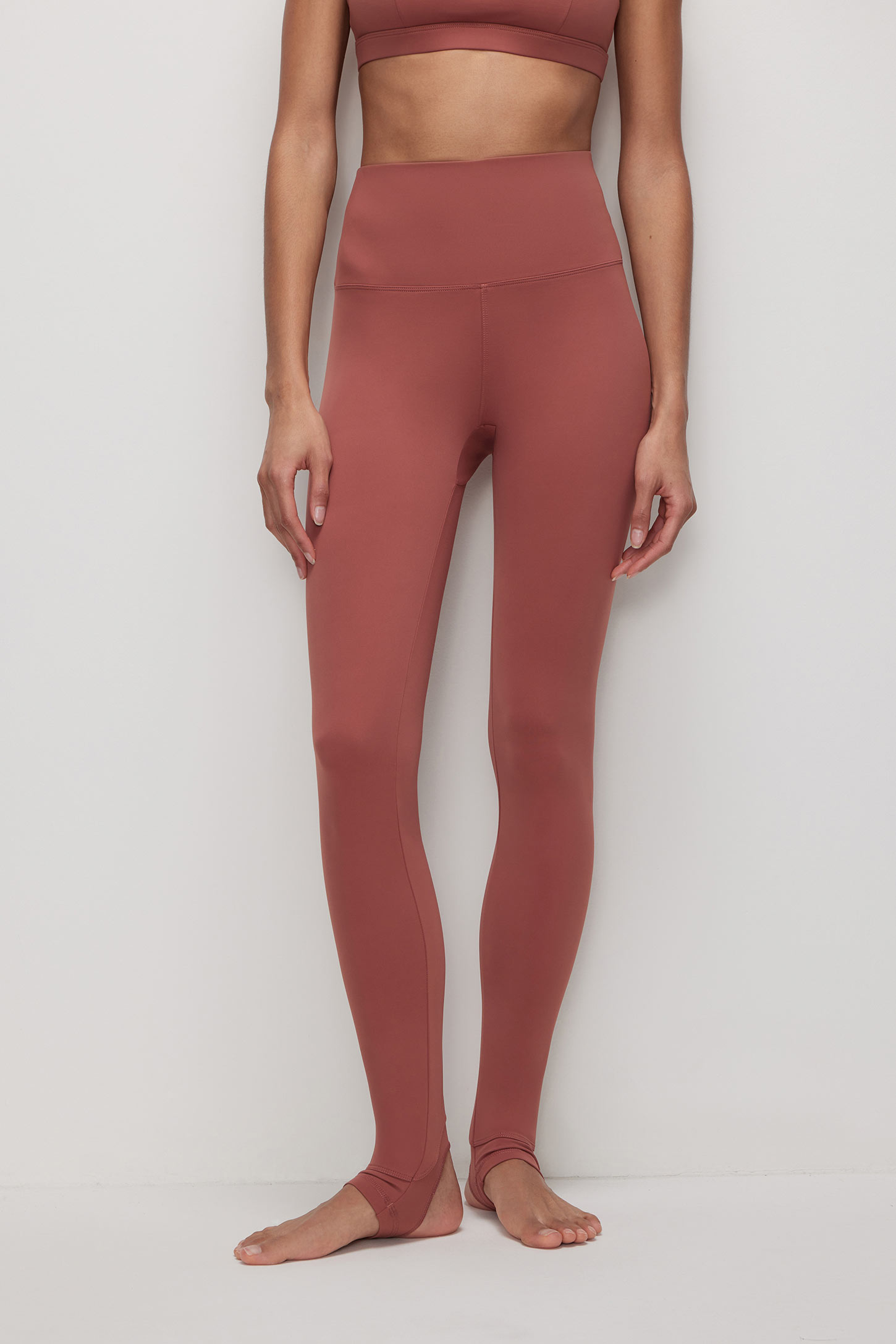 Спортивные легинсы со штрипками терракотовые