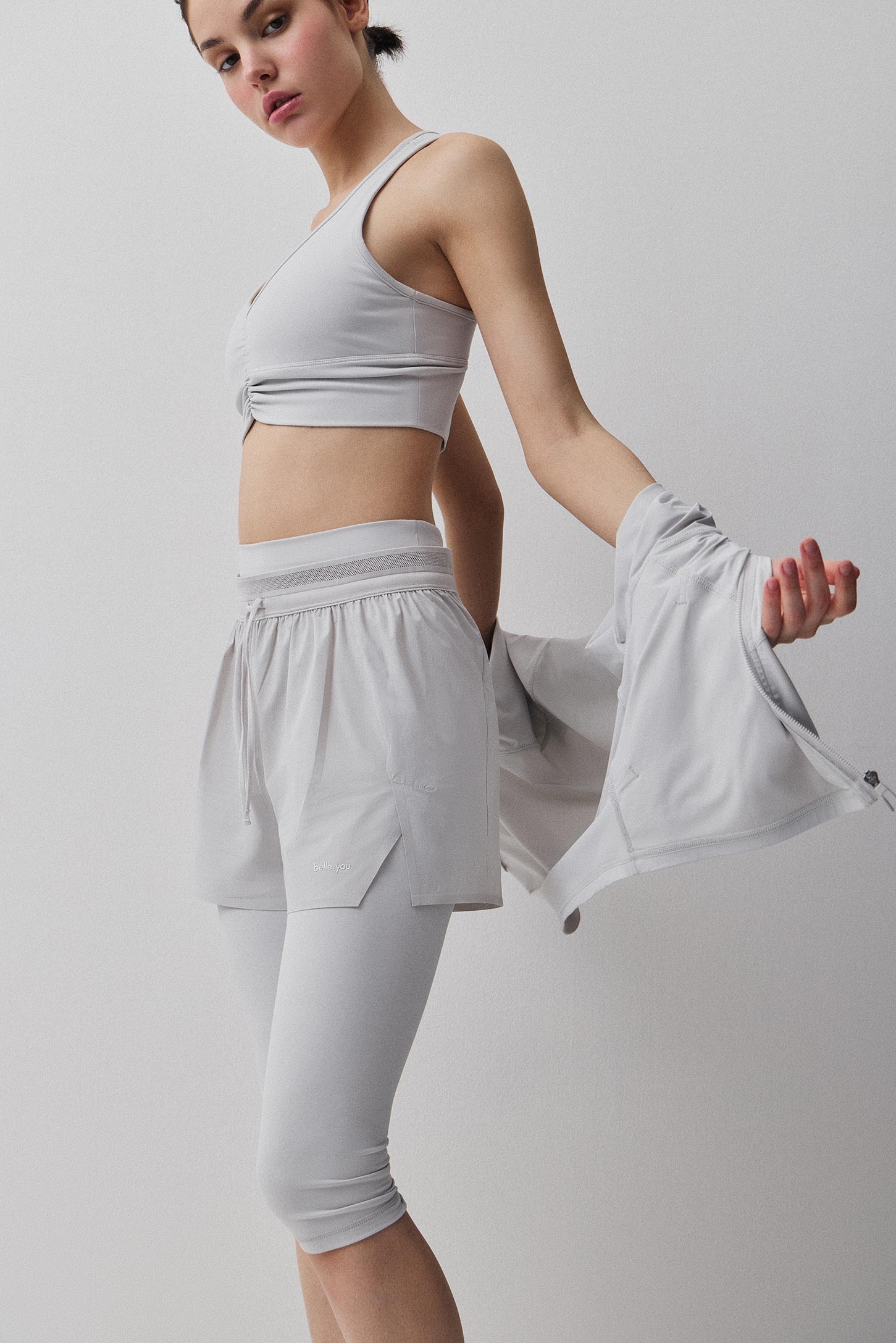 Спортивные технологичные шорты на резинке дополнены шнуром для лучшей фиксации по талии. Низ изделия и боковые швы проклеены с помощью технологии Heat Seal. Модель имеет внутренние трусики из сетки для максимально комфортного занятия спортом. Задний карман на молнии добавляет функциональность изделию. Завершает дизайн - силиконовый принт-лого спереди.