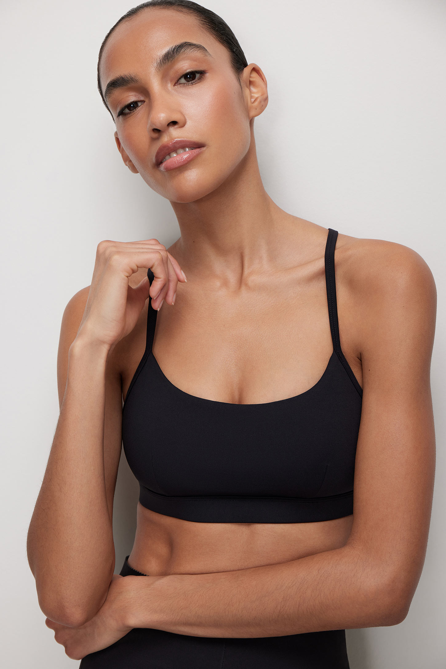 Спортивный топ на тонких регулируемых бретелях. Модель из эластичной микрофибры мягко облегает тело, подчеркивает силуэт. Изделие полностью на подкладе. Съемные чашки-вкладыши обеспечивают комфортную поддержку груди во время тренировок, а резинка по низу фиксирует силуэт. Завершают дизайн маленькие акценты - вырез и силиконовый принт-лого по спинке.
