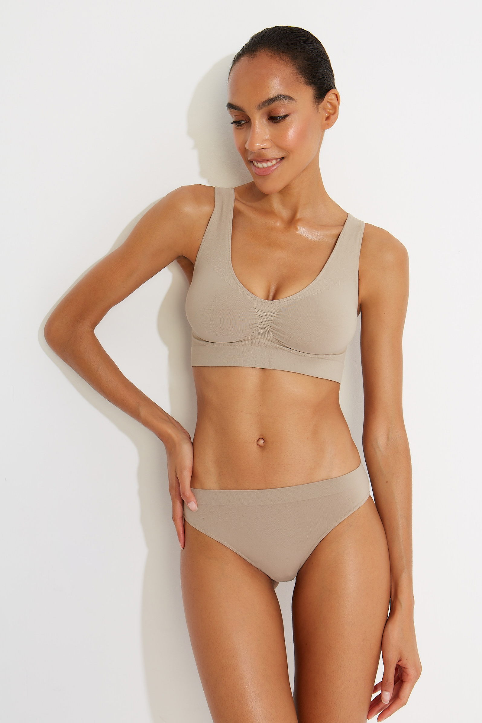 Топ на широких бретелях с поддержкой груди серо-бежевый