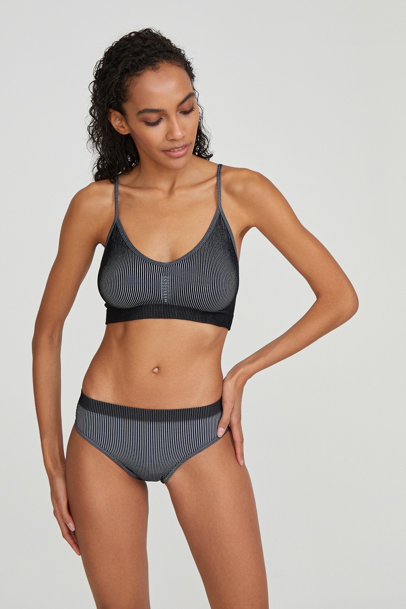Комфортные трусы с низкой посадкой подойдут для любого типа фигуры. Модель из микрофибры в двухцветный рубчик выполнена по современной бесшовной технологии, единственный плоский шов расположен под мягкой гигиенической ластовицей. Оригинальность изделию придает ажурный декор. Для комплекта можно подобрать топ арт.8-25R
