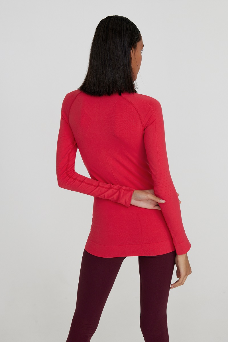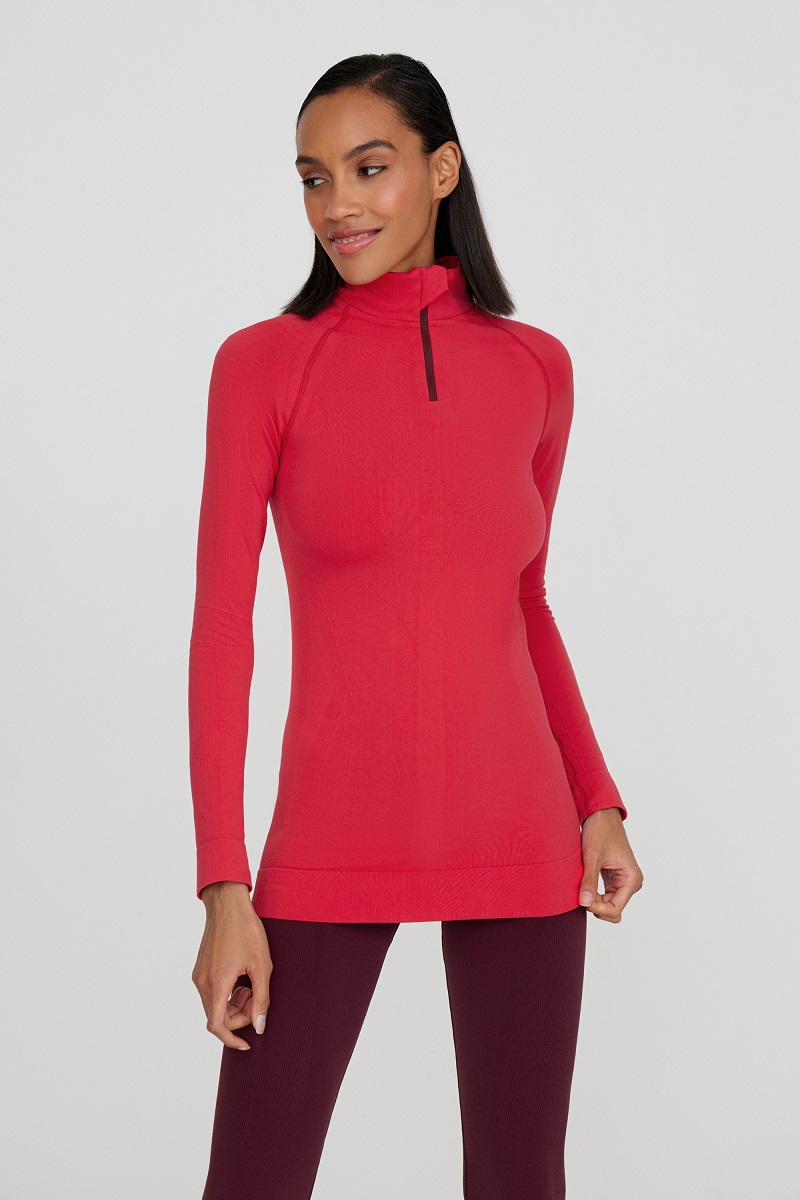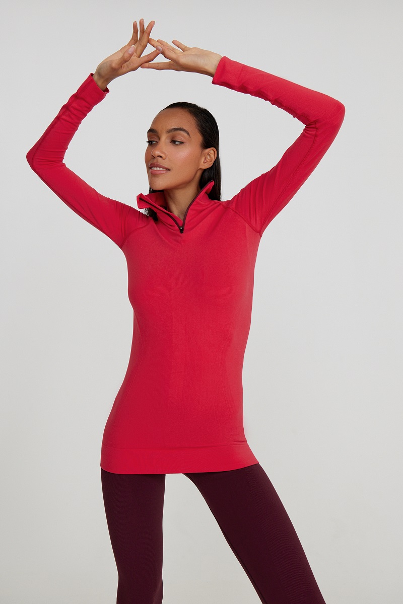 Термофутболка для занятий спортом и активных прогулок в холодное время года (до -20 градусов в сочетании с верхней одеждой). Модель выполнена по современной бесшовной технологии из плотного эластичного трикотажа. Лаконичный воротник-стойка на молнии деликатно облегает шею. Рукав реглан обеспечивает свободу движений и мягко подчеркивает линию плеч.