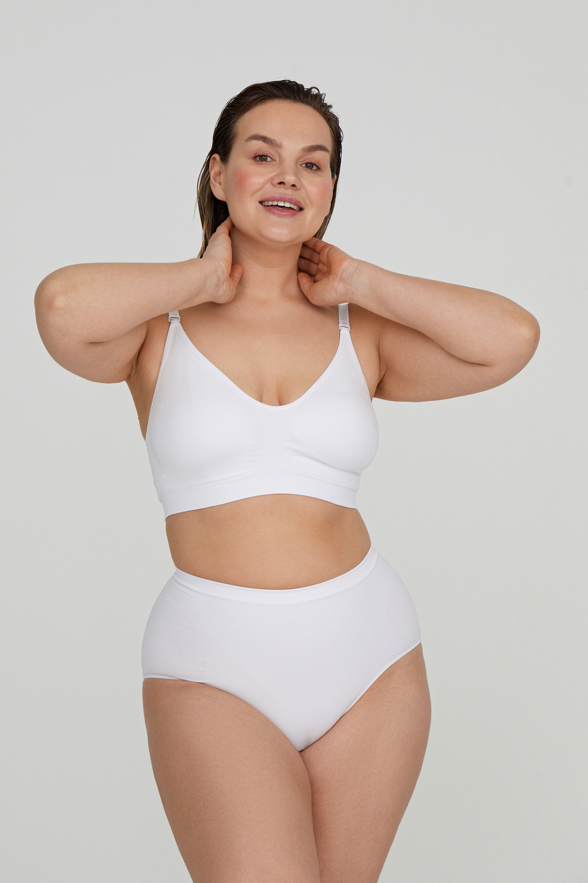 Топ из шелковистой микрофибры с эффектом пуш-ап выполнен по современной бесшовной технологии. Уверенно поддерживает бюст благодаря вкладышам из мягкого поролона и плотной цельновязаной резинке в рубчик по низу изделия. Особенности модели: плавная V-образная линия декольте, округлый вырез на спинке и тонкие регулируемые бретели с серебристым декором. Рекомендуем топ обладательницам груди размеров В, С, D.