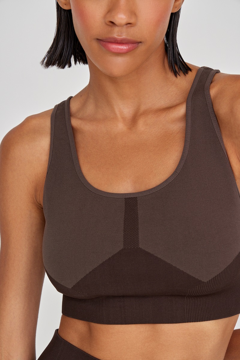 Спортивный поддерживающий топ из плотной микрофибры выполнен по технологии бесшовной вязки. Модель имеет подклад, благодаря которому топ не просвечивает и обеспечивает надёжную поддержку груди. По низу топа проходит широкая резинка для усиления поддерживающего эффекта. Модель представлена в оригинальном геометрическом рисунке для создания разнообразных спортивных образов.